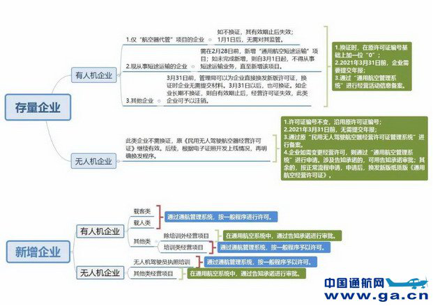 A6:此類情形適用《通用航空經(jīng)營許可管理規(guī)定》有關 規(guī)定。企業(yè)需通過“通用航空管理系統(tǒng)”提出申請,按照申 領或變更通用航空經(jīng)營許可證的有關程序辦理。其中,存量 無人機企業(yè)在取得新版《通用航空經(jīng)營許可證》的同時,其 原持有的《民用無人駕駛航空器經(jīng)營許可證》自動失效(許可證編號參見 Q2/A2)。